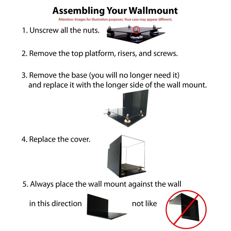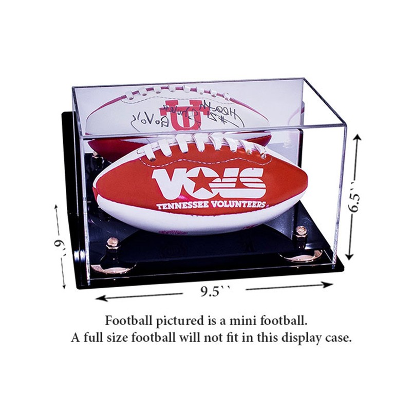 Better Display Cases Acrylic Mini - Miniature (not Full Size) Football Display Case Gold Risers Mirror Wall Mount (A005-GR)