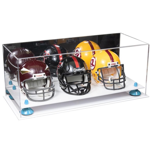 - HIGH QUALITY clear acrylic three mini helmet display cube; perfect for displaying your collectible three mini helmets (not Full Size).