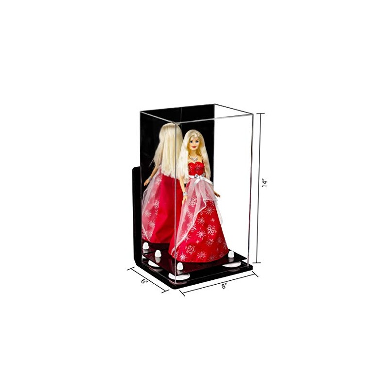 Protect and display your collectibles in one of our beautiful, high-quality display cases. This display case will make your memorabilia stand out and provide protection from damage caused by dust, spills, fingerprints, light or simply something falling on top of it. These cases are constructed of 1/8" crystal clear, durable high clarity acrylic on 4 sides and the top. Front and top of case are made from one piece of acrylic (plexiglas), giving an aesthetically pleasing rollover appearance with fewer seams. Back is mirrored and wall mount is included. The black acrylic two-tiered base comes with white metal risers. The solid platform allows anything that fits in this case to be displayed. Each case includes rubber feet placed on the bottom to protect case from scratching your shelf or table. This is a wonderful gift for the person who has it all, but needs something to display it in. Memorabilia pictured in the display case not included. We would love to help you display your story!