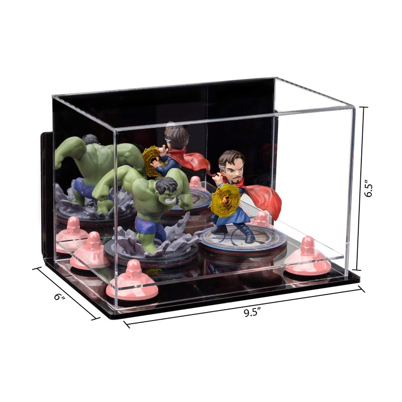 Better Display Cases Versatile Acrylic Display Case - Small Rectangle Box with Mirror, Wall Mount, Pink Risers and Clear Base 9.5" x 6" x 6.5" (A005-PNR)