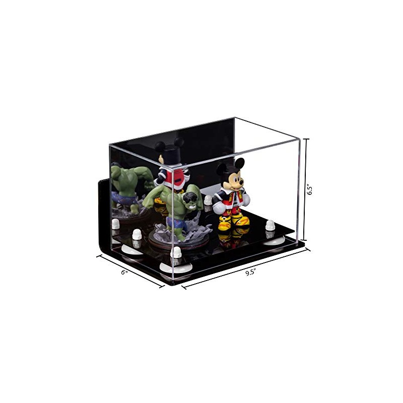 Better Display Cases Versatile Acrylic Display Case - Small Rectangle Box with Mirror, White Risers, Wall Mount and Black Base 9.5" x 6" x 6.5" (A005, V43)