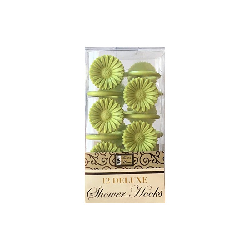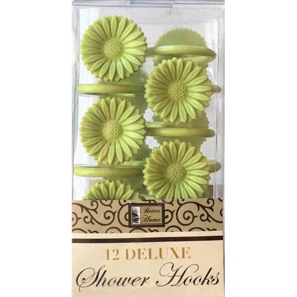 Better Home 12 Daisy Flower Deluxe Shower Hooks S" Shaped Fun Design Curtain Rings (Green)