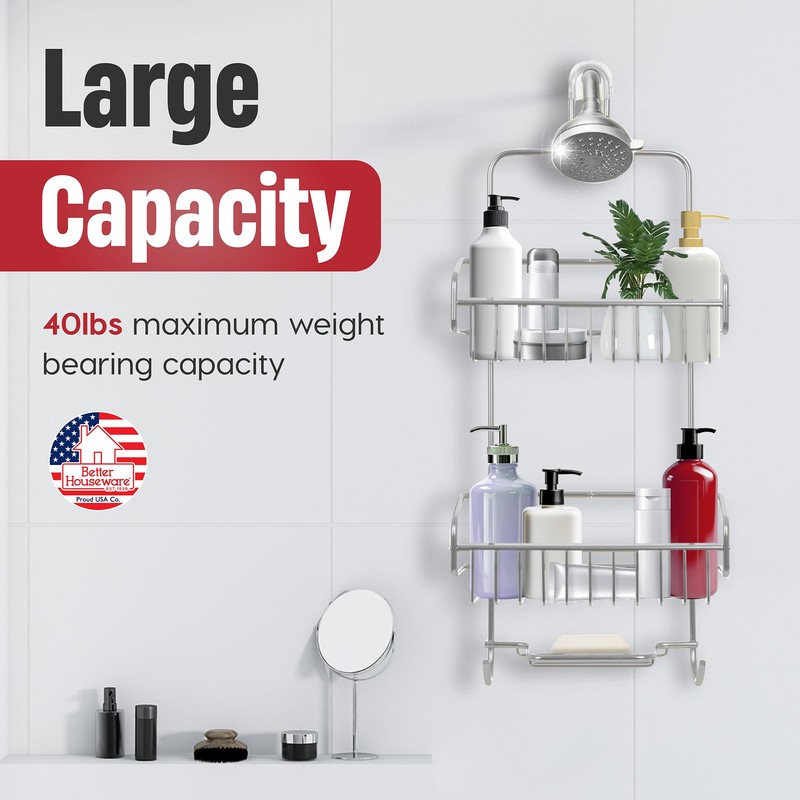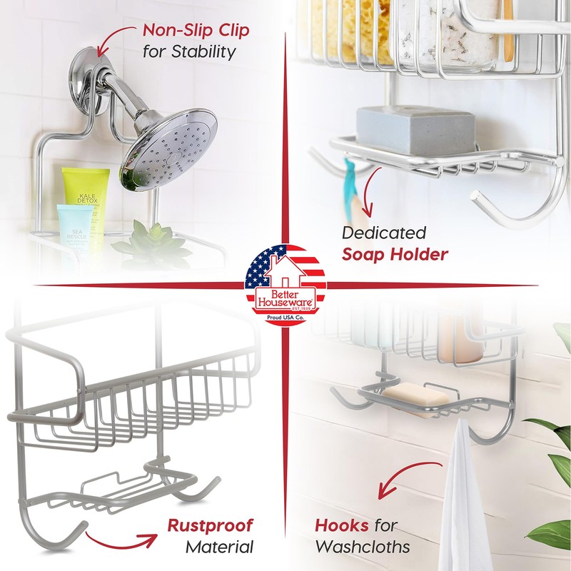Better Houseware Aluminum Shower Caddy (Silver) + Soap Holder/Saver Set