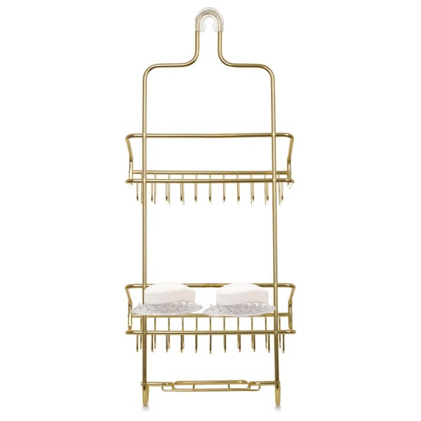 Better Houseware Shower Caddy - Shower Organizer Shelves with Hooks, Rustproof Shower Storage Rack for Shampoo, Conditioner, Soap, Bath Sponge - Gold (Caddy + Soap Holder)
