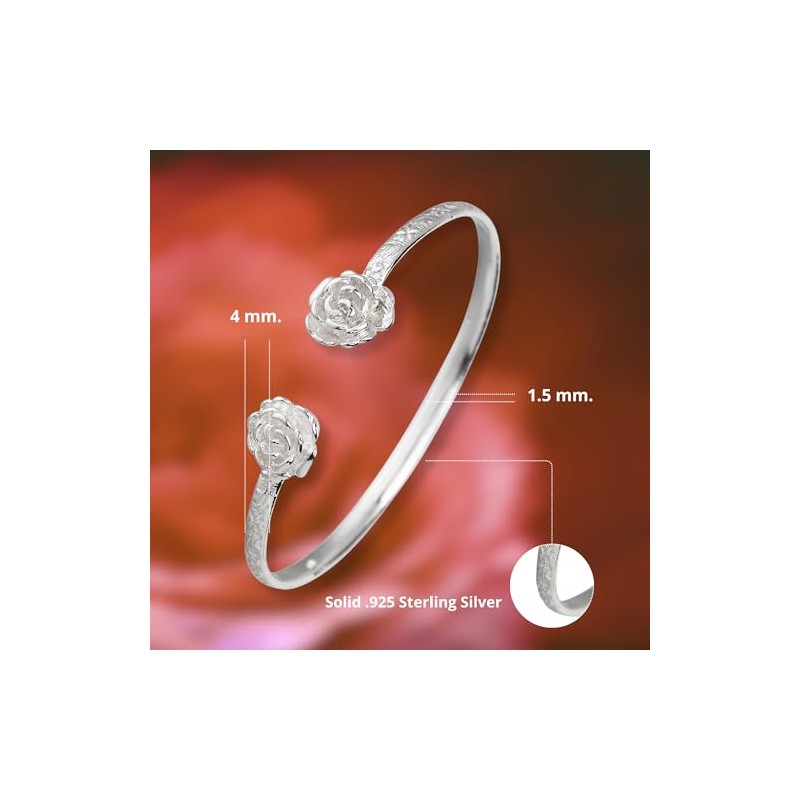 Better Jewelry .925 Sterling Silver Rose Bangles Women Woman Silver Bracelet Set (1 Piece) (Silver, 7)