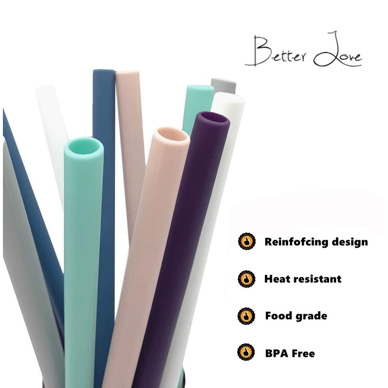 Better-Love Set of 6 Silicone Drinking Straws for 30oz and 20oz - Silicone Straws Reusable Straws BPA Free Extra Long with Cleaning Brushes- 6pce- 8mm diameter
