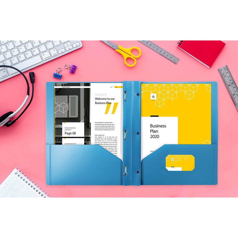 - 24-Pack of Light Blue 0.35mm Heavyweight polypropylene folders with 3 metal prongs to fit 8.5" x 11" paper/documents