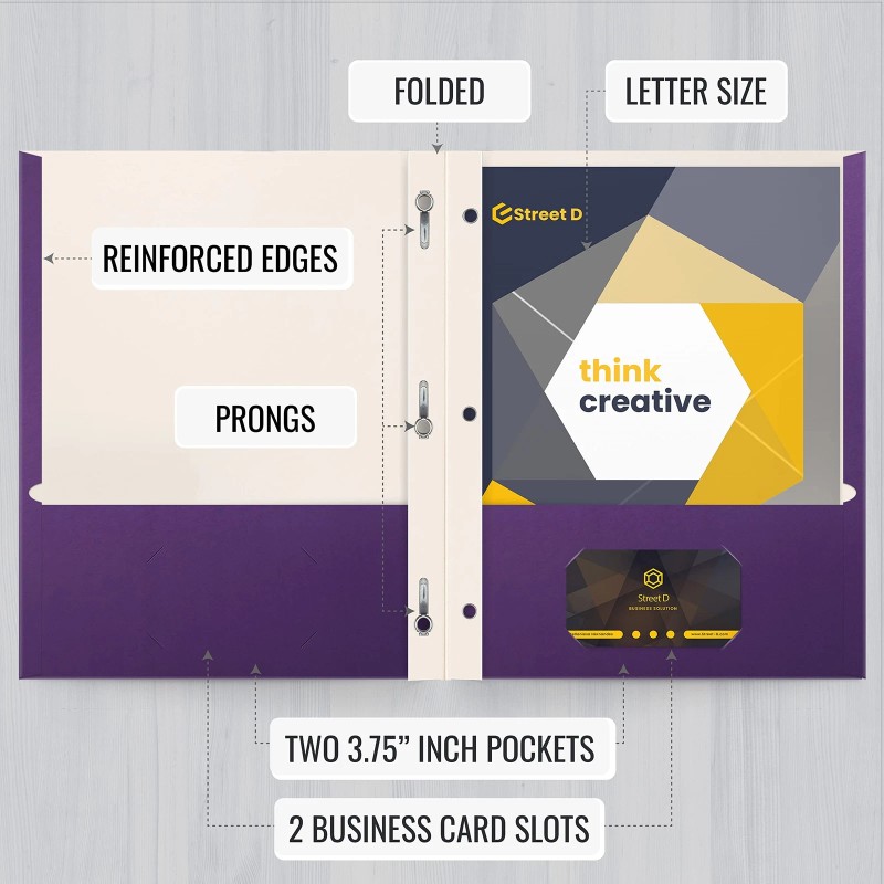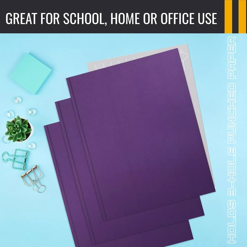 - 50-PACK: Purple matte finish paper folders with 3.75" pockets and prongs. Easily holds 100 sheets (50/pocket) of letter size (8.5" x 11") paper/documents. But can even handle more.