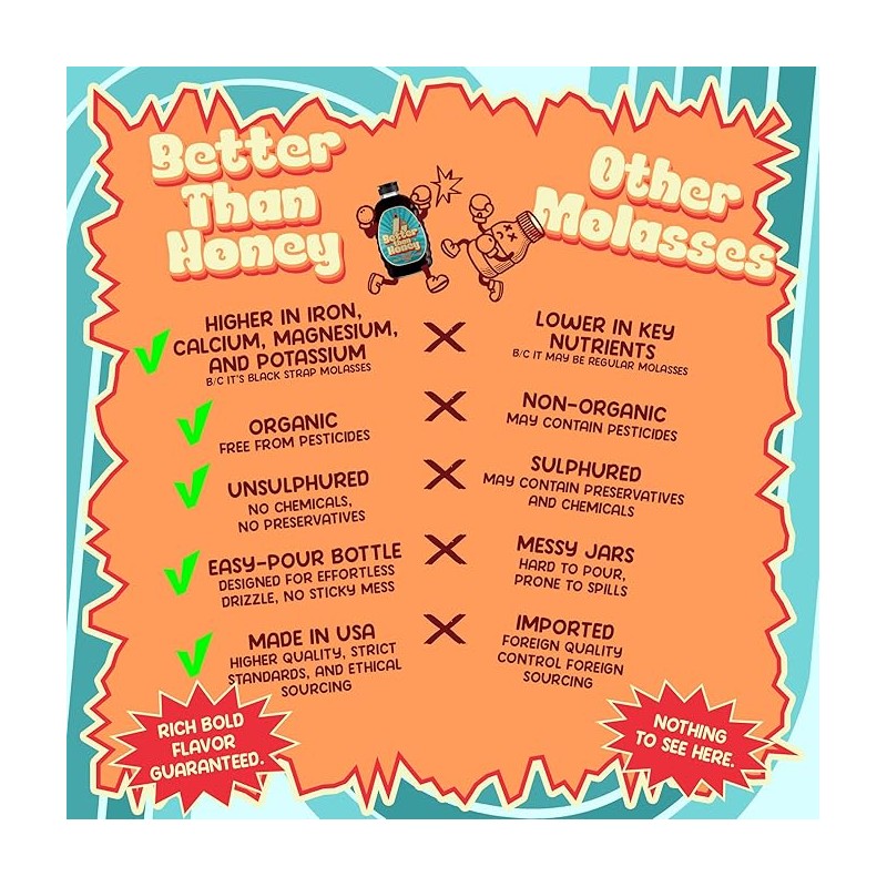 Better Than Honey Organic Blackstrap Molasses 32oz– Unsulphured Natural Sweetener with Rich Flavor for Baking, Coffee, Smoothies, Pancakes & Everyday Kitchen Use