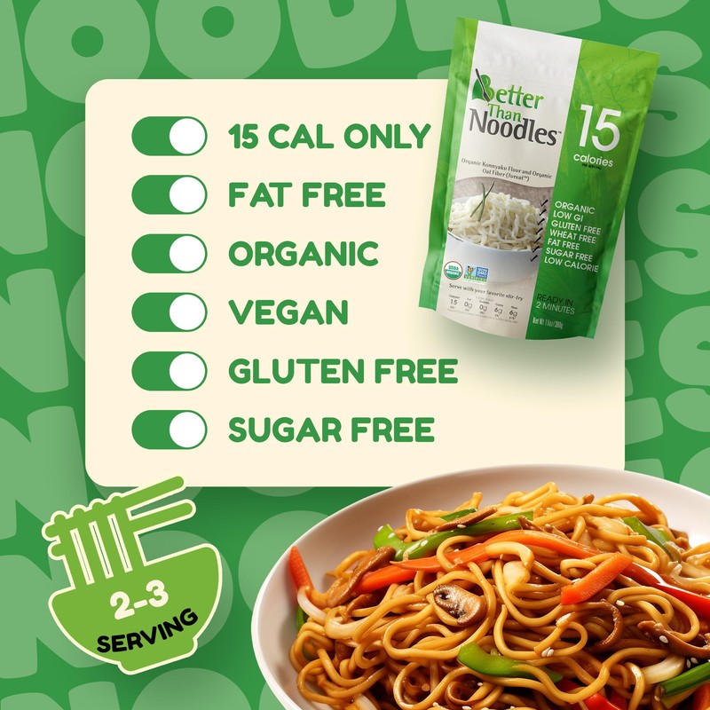 Better Than Noodles - USDA Organic Certified Shirataki Noodles, Low Carb, Keto-Friendly, Gluten-Free, No Odor, Instant Ready, Konjac Pasta & Rice Alternative – 14oz (Pack of 6)