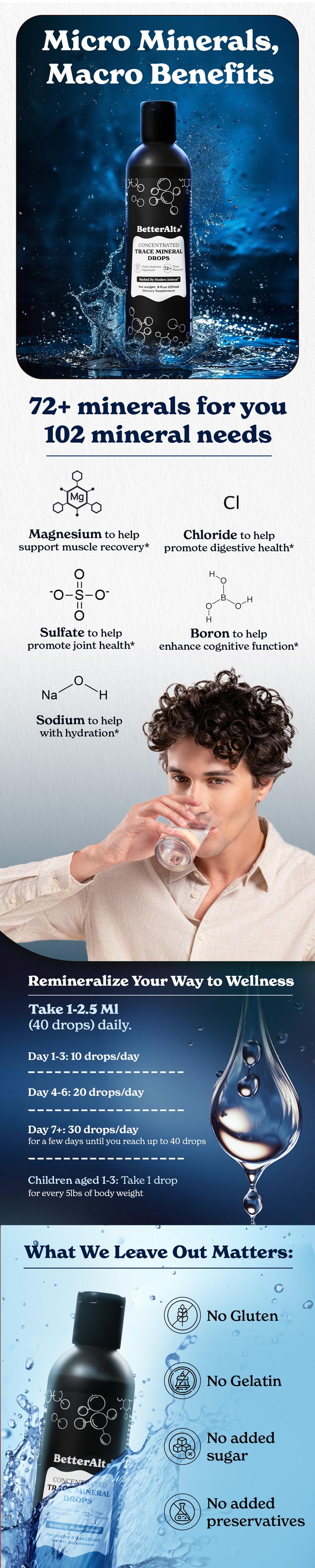 BetterAlt Concentrated Trace Mineral Drops | From Utah’s Great Salt Lake | Supports High Absorption - 96 Servings | Edible Dietary Supplement