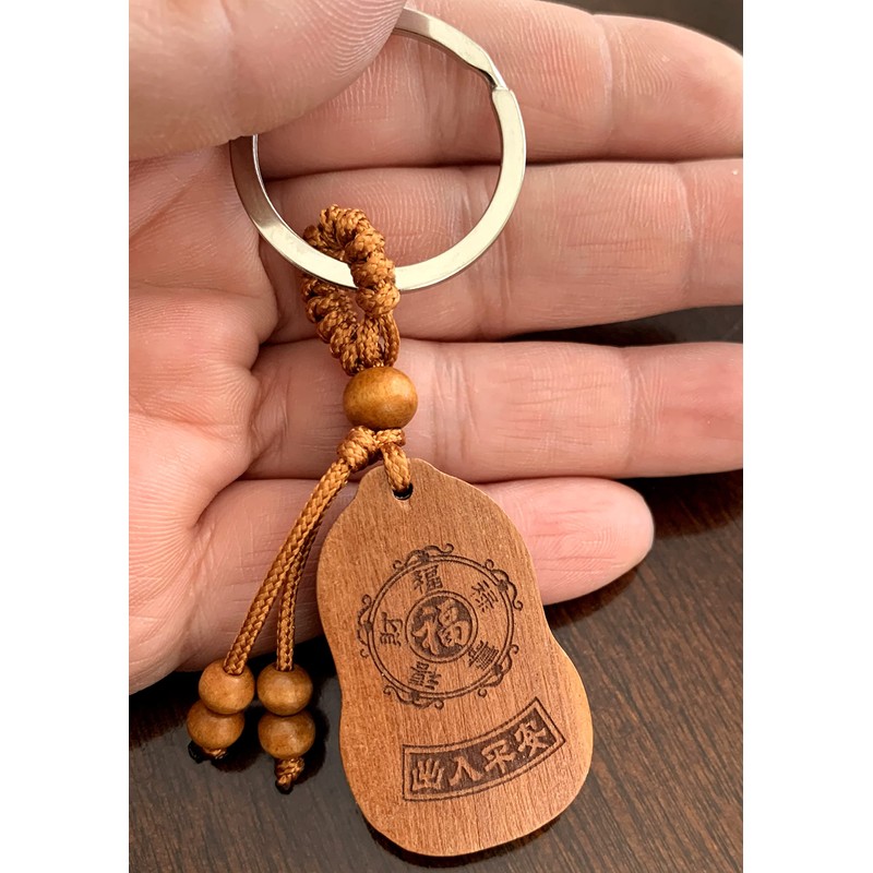 - Detal: Material : Peach wood;Size of Key Ring : 4" in length. Size of plate:1"x1.8"