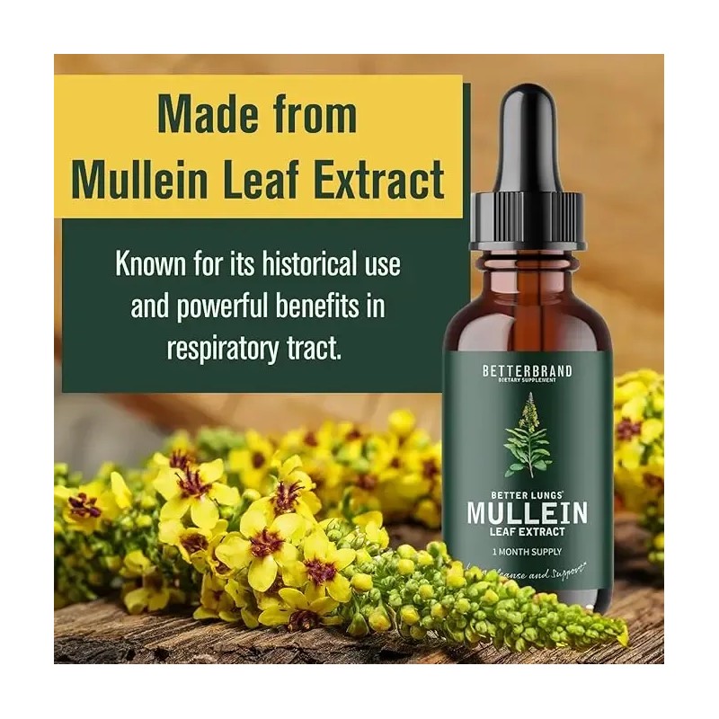 •DAILY RESPIRATORY WELLNESS- Time-tested properties of Mullein Leaf Tincture help your body's natural mucus-clearing processes, promoting clearer airways and reduced mucus production. Breathe in with confidence and experience the freedom of easier, unhindered respiration.
