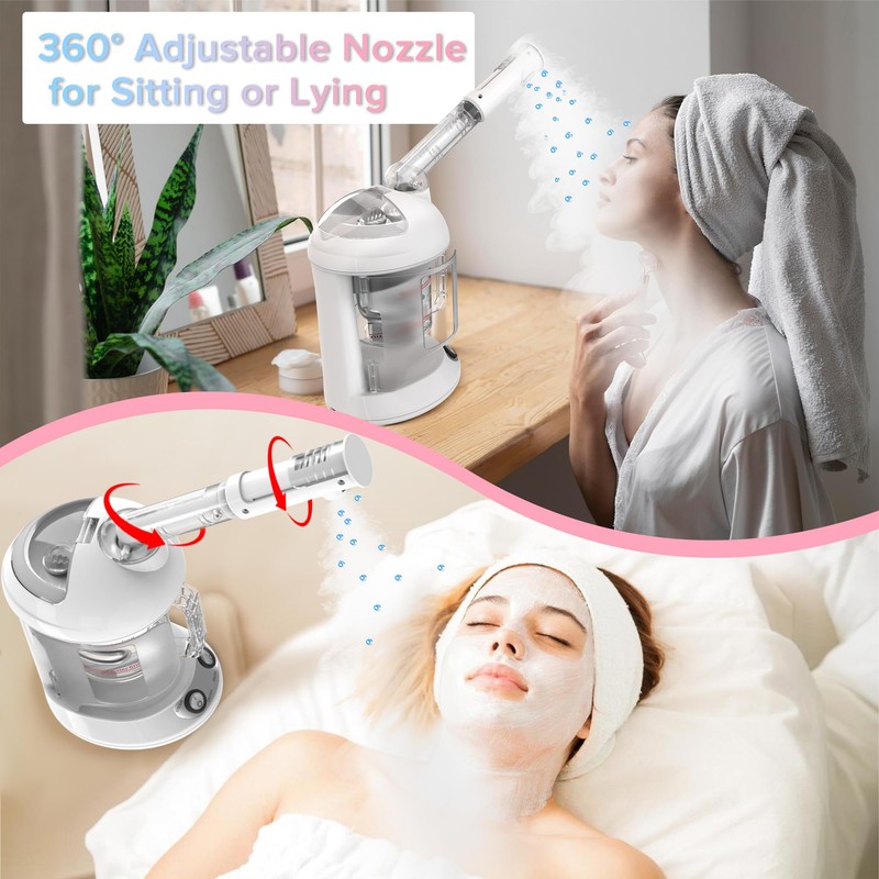 - User-Friendly Design: This facial steamer is incredibly easy to use. The controls are straightforward, and the device heats up quickly just wait about 4 minutes for the steam to be ready. The 360 rotating sprayer is a great feature, allowing you to adjust the angle for the most comfortable and effective application. It's versatile enough to accommodate various positions, whether you are sitting or lying down.