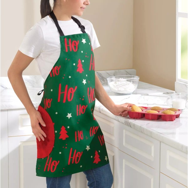 Protégete y evita ensuciarte al preparar tus alimentos navideños con el Mandil Navidad. Está elaborado de material resistente a salpicaduras y al calor.