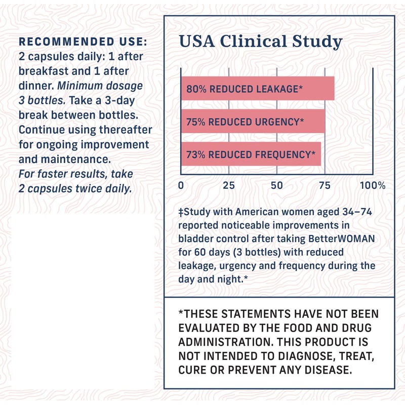 BetterWOMAN Bladder Control Supplement for Women- Helps to Reduce Bathroom Trips - Sleep Better at Night –Reduce Urgency and Occasional Leakage* - interceuticals (2 Bottles)