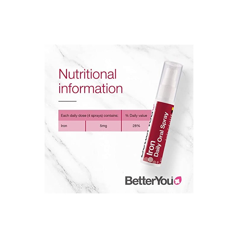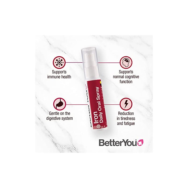 BetterYou Iron Daily Oral Spray - Convenient Alternative for Tablets - Gentle on Digestive System - Reduces Tiredness, Supports Brain Function and Immune System - Natural Apple Flavor - 0.84 oz
