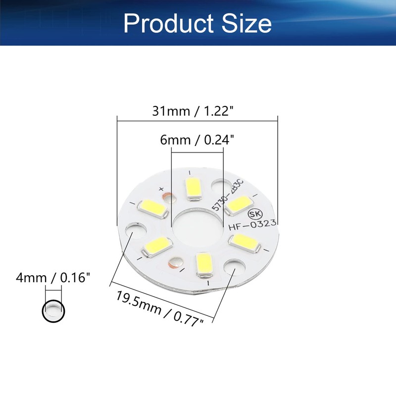 Bettomshin LED Chip Circular Module 3W Aluminum Pure White 6500K High Power 300ma for Floodlight Lamp 31mm Dia 15Pcs