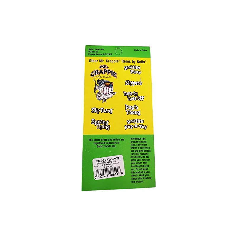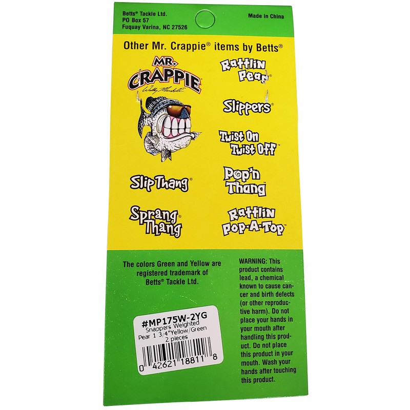 Betts Mr Crappie Snap-On Float Pear 1-3/4in Weighted 2pk Md#: MP175W-2YG