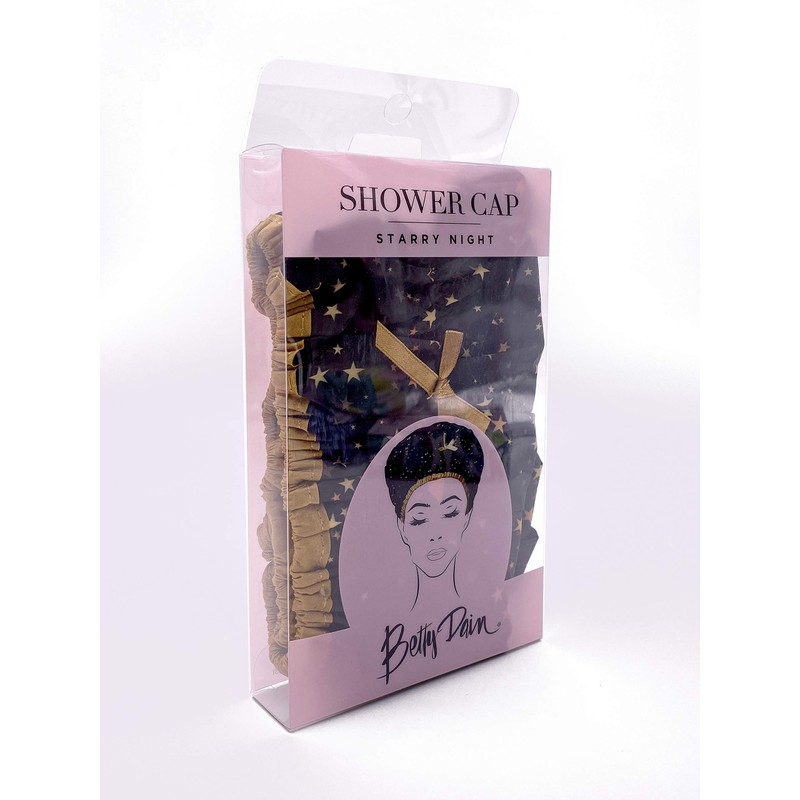 - WATERPROOF VINYL ALTERNATIVE: Form, function, and fun! The Betty Dain Fashionista Collection of stylish shower caps feature stretchable elastic trim to fit most head sizes and a soft, waterproof design made from frosted PEVA, an non-chlorinated alternative to vinyl. These sassy shower caps will stay clean and fresh shower after shower!