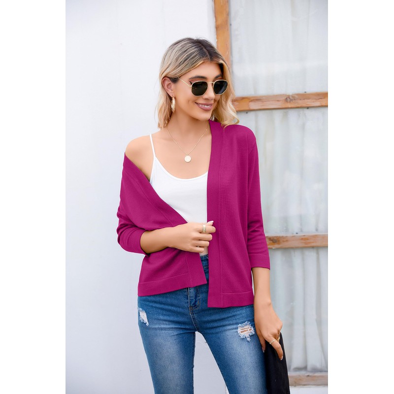 Layer up for those chilly nights ahead with the soft women's knit cardigan! This elegant open front cardigan sweater features a cropped design and classic 3/4 sleeve with drop shoulders. The lightweight cardigan ends at soft ribbed cuffs and hem. Classy vintage shrug bolero, perfect to wear over a party dress, t-shirt or jeans as a comfortable cardigan day or night.