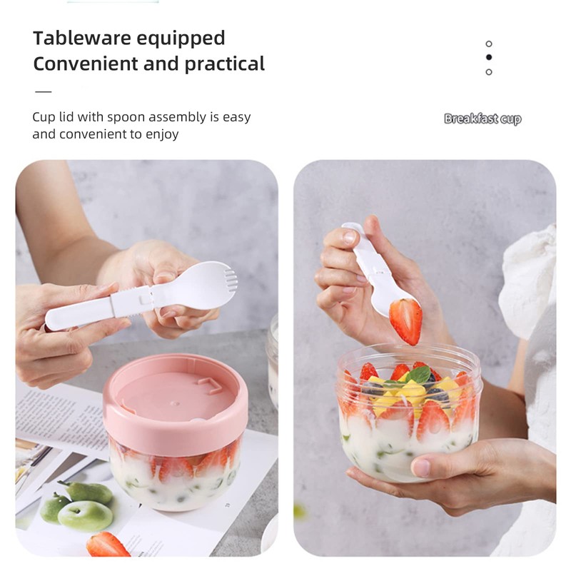 - Large capacity & Convenient: Oat container can hold 600ml (20oz) of liquid, which is for those who need a large capacity yogurt cup. The yogurt cup also comes with a spoon, so you don't need additional utensils when using it. The lids seal tightly to prevent spills and maintain freshness.