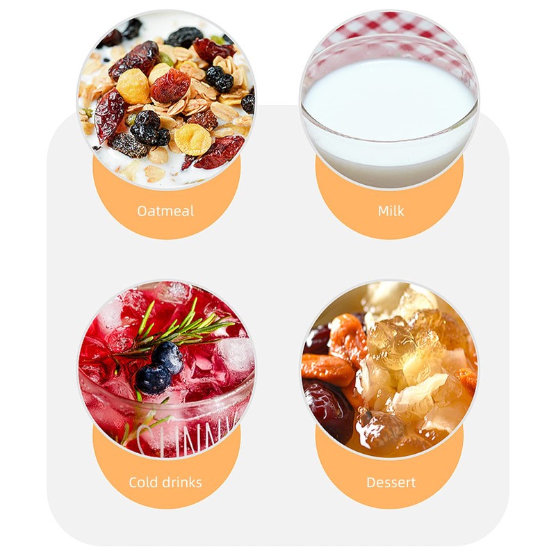 3. Large capacity & Convenient: Oat container can hold 600ml (20oz) of liquid, which is for those who need a large capacity yogurt cup. The yogurt cup also comes with a spoon, so you don't need additional utensils when using it. The top of the container lid can be used to store the spoon, and we also have a dust cover to keep it and convenient for you to use.