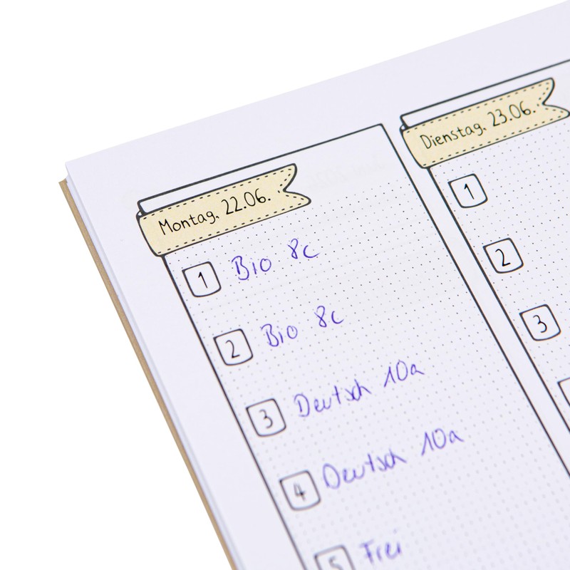 High quality: with durable paper (90 g/m²), ink bleeding through is avoided. The fold-down note lists make it particularly easy to write in, while the wipe-clean foil page offers flexibility. This planner is the ideal tool for a well-organized school year.