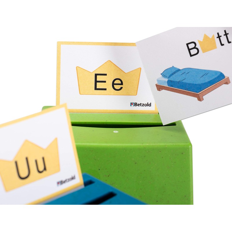 Recognise and assign self-sound: When using the vowels in a playful way, the little ones become a great syllable king in no time. Not included in the set are 5 cup quizzers for the task cards into which the word cards can be inserted.