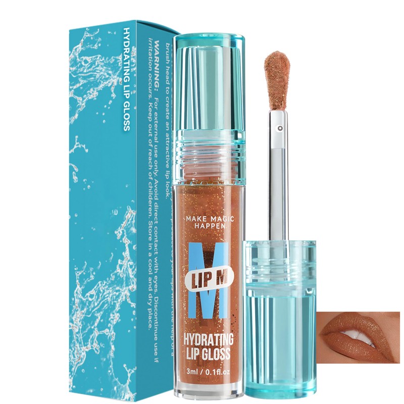 BEUKING Pearlescent Lip Glaze, Blue Bottle Long Lasting Lipstick, Non-Stick Cup Lightweight Matte High Pigment Not Fade Non-Smudge Lip Gloss for Daily Lip Make Up (05# Brown, 1 OZ)