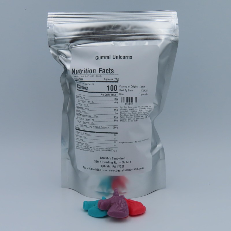 Beulah's Gummy Unicorns, 1 Package Pound, 60 Pieces of Candy