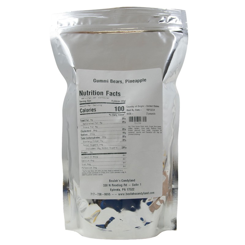 Beulah's Pineapple Gummy Bears, 2 Pound Package, 260 Pieces, All Pineapple Gummy Bears