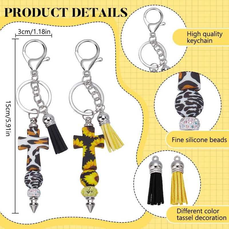 BEUNITONE 108 Pcs Beadable Keychains Bars DIY Cross Beadable Keychain Bars Bead kit 12 Set DIY Multicolor Cross Tassels Blank Bulk Keychains for Adults Women Students Gift