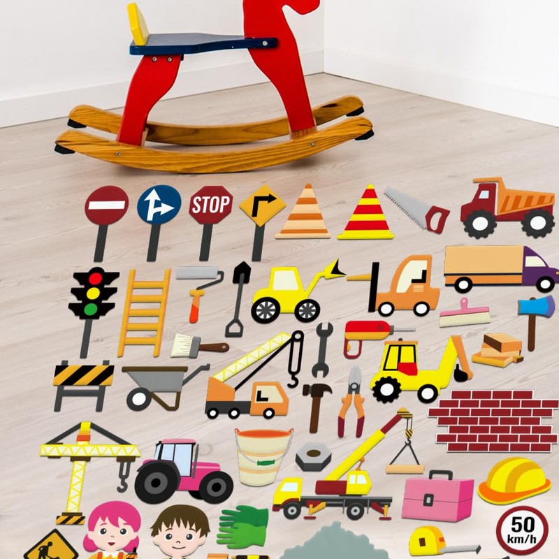 - High Quality Material: These construction team theme felt board play pieces are made of durable and sturdy felt with sticker, no magnet glue needed, reusable. You can play on the floor, table and even bed for hours of fun. It is a good room decoration!