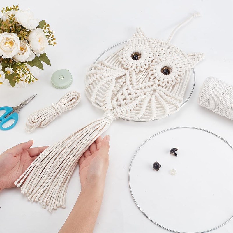 - HOCHWERTIGES MATERIAL:Das Makramee-Eulen-Set besteht aus Materialien von außergewöhnlicher Qualität, inklusive robuster Seile und aufwendig gestaltetem Zubehör, alles sorgfältig ausgewählt, um ein wunderbares Bastelerlebnis zu gewährleisten.