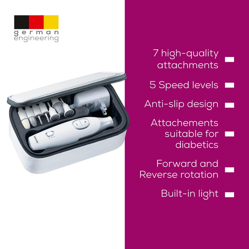 Beurer MP42 Nail Drill, 7-in-1 Nail Kit with Strong Sapphire Nail Drill Bits, Electric Nail File and Nail Buffer Includes Bright LED Light, Pedicure Kit and Manicure Set with Storage Case