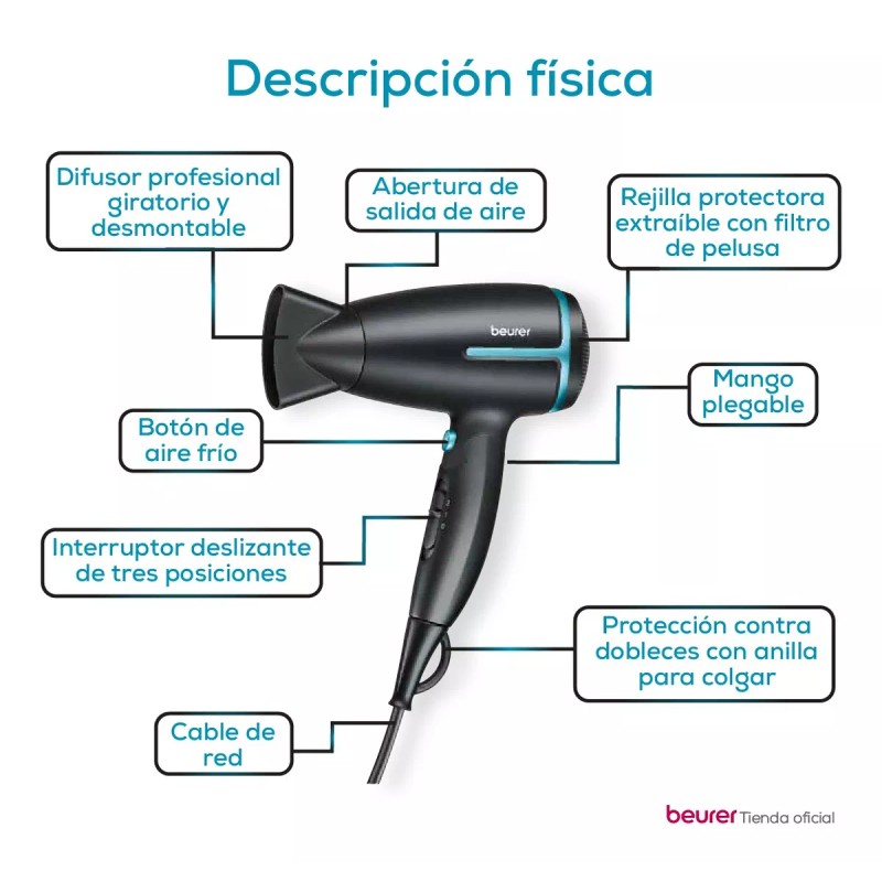 NOMBRE: Secador de pelo de viaje de Beurer - HC 25 Edición Black Line