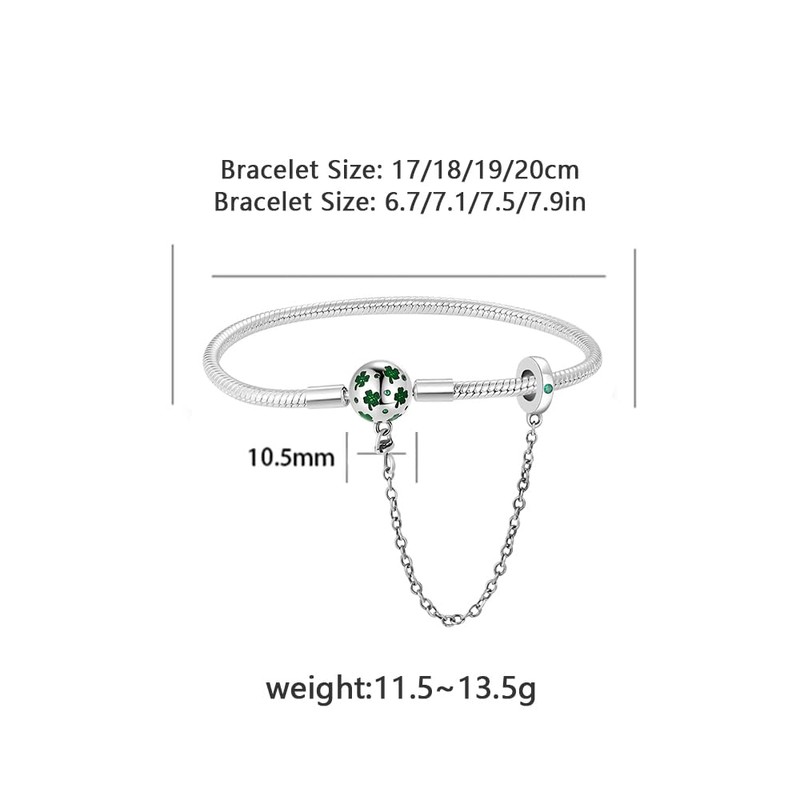 BEVALY 6.7in/17cm Four leaf clover Snake Chain Charm Bracelet 925 Sterling Silver Bead with 5A Cubic Zirconia for Women Gift for Her