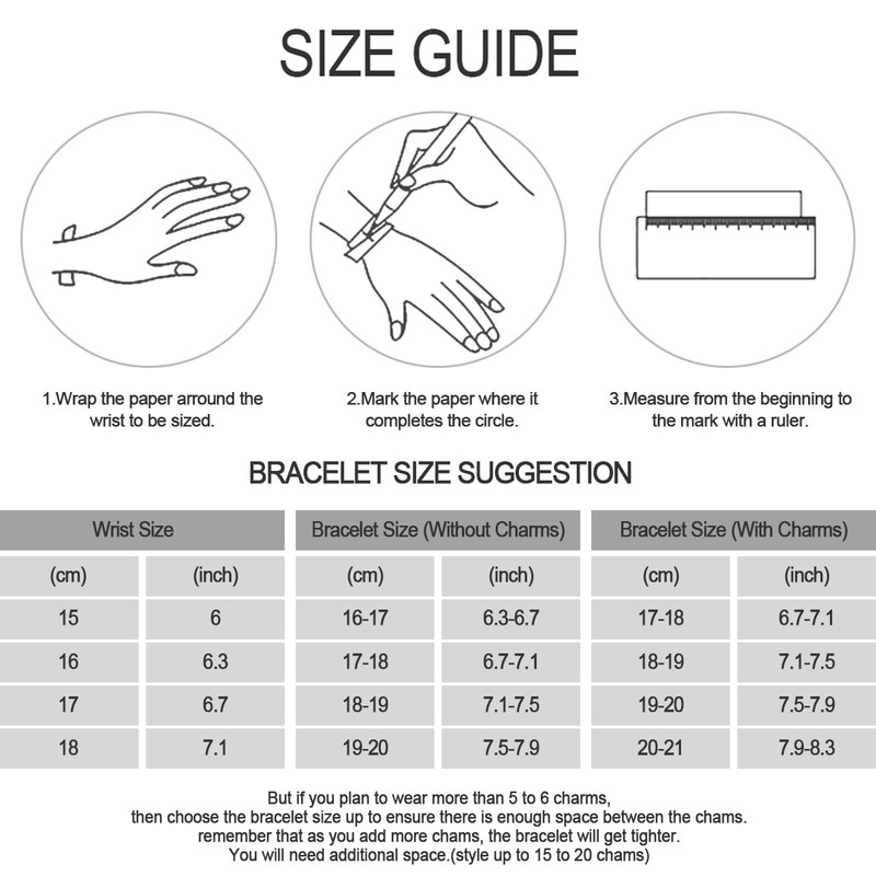 - ❤ ATTENTION ❤-- Please kindly check the size before purchasing. BEVALY Jewelry suggests correct bracelet size = Your wrist size + 1 cm/1.5 cm.The extra 1 or 1.5cm are for adding charms to your bracelet in the future, as the snake chain bracelet will become tighter as you add charms.
