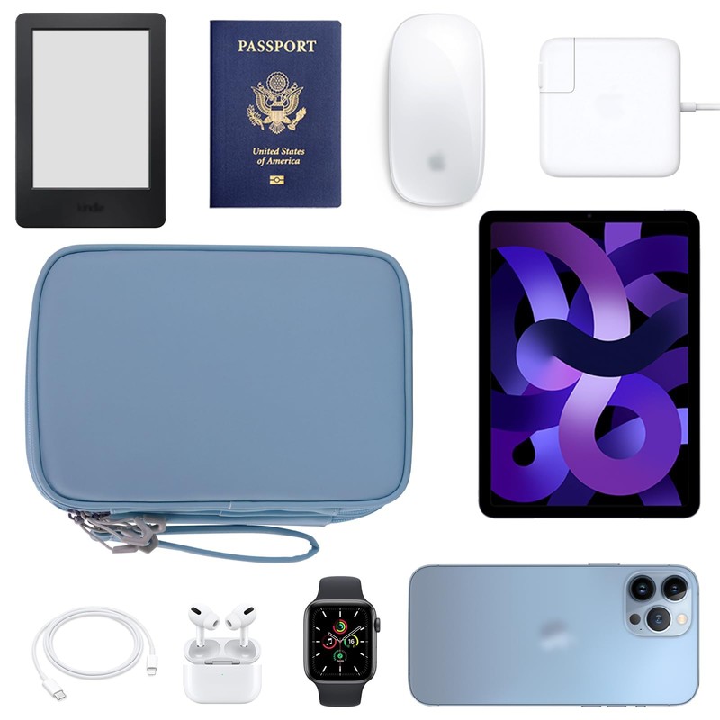 Bevegekos Tablet Accessories Case Bag, Travel Large Electronics Organizer for Chargers & Cords, Cables, 7.9 Inch Tablet, Airplane Essentials, 2 Layers (Misty Blue)