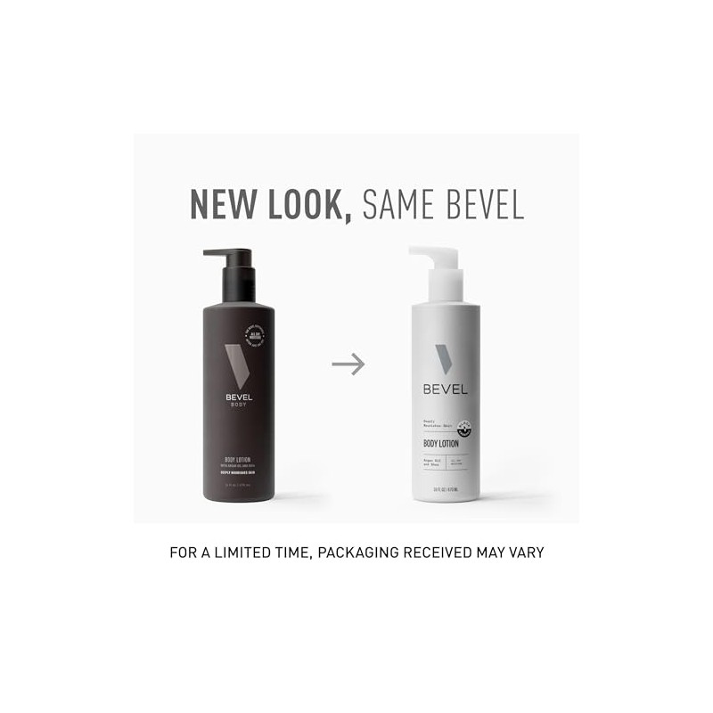 Bevel Bevel All Day Body Lotion for Men with Shea Butter and Argan Oil, Lightweight Formula Softens and Smoothes Skin, 16 Oz (Packaging May Vary)