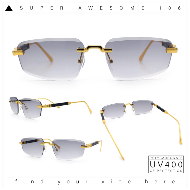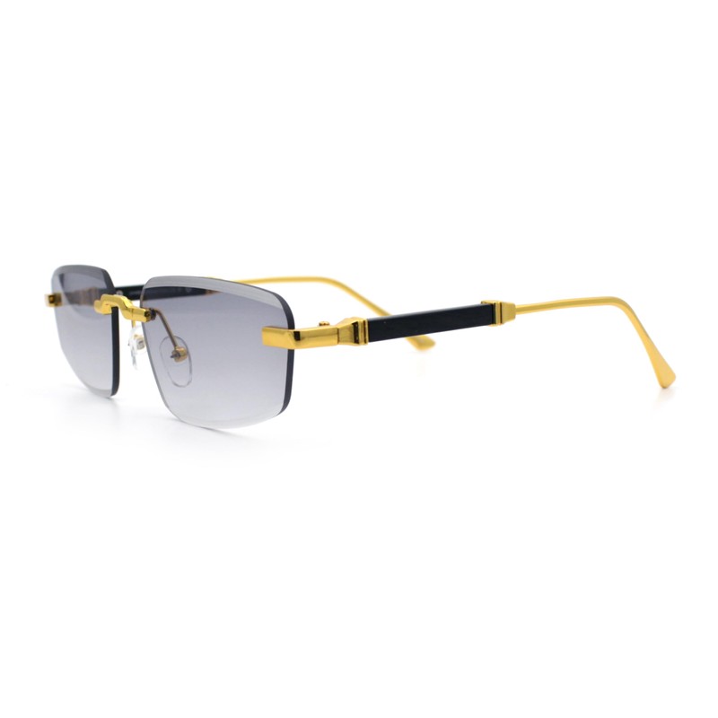 Bevel Lens Rimless Hustler Retro Gangster Rapper Rectangle Luxury Sunglasses Gold - Smoke