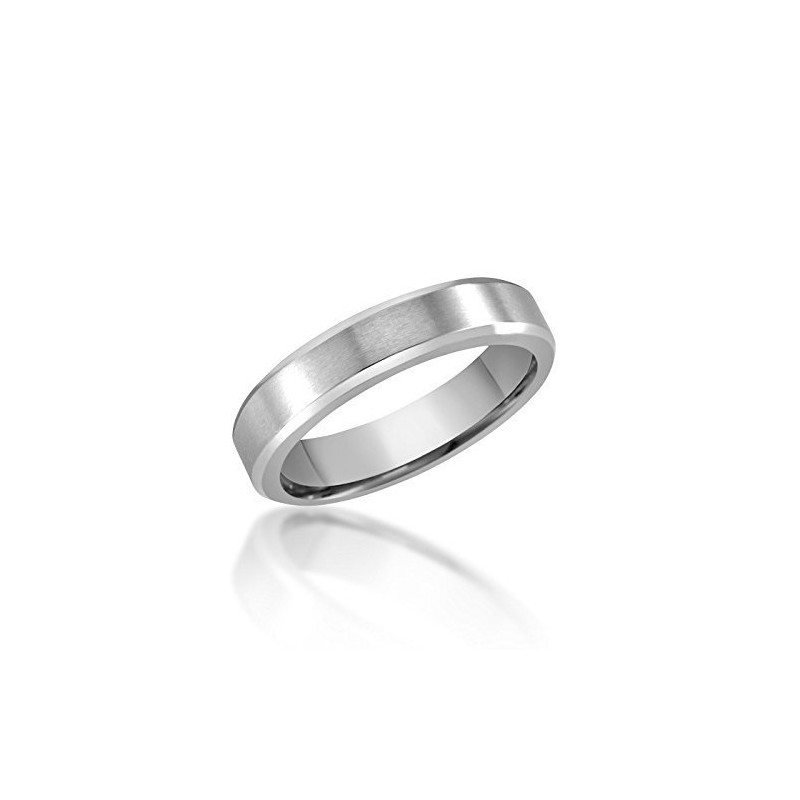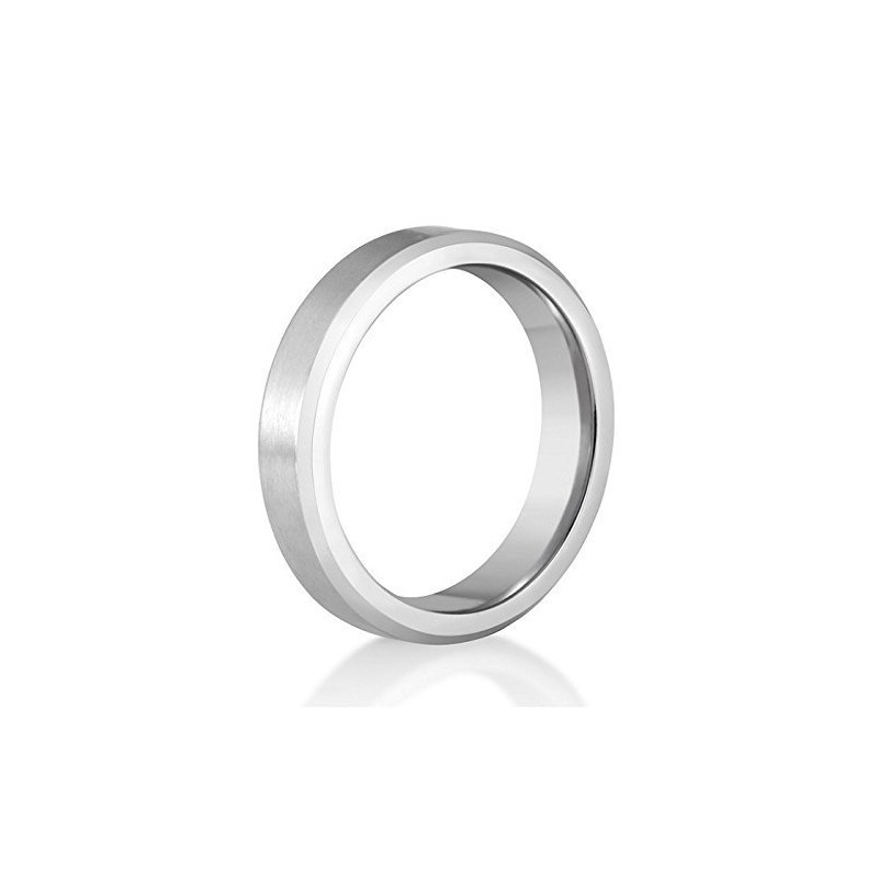 This brushed titanium ring provides a great traditional look with a beveled comfort fit edge (mirror finish) for long, everyday wear.