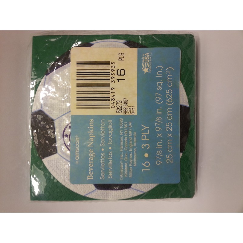 Beverage Napkins ~ Soccer Ball Design ~ 16 Pieces