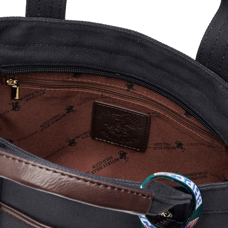 Beverly Hills Polo Club BH1006N Canvas Tote Bag with Shoulder Strap, multicolor (black / white)