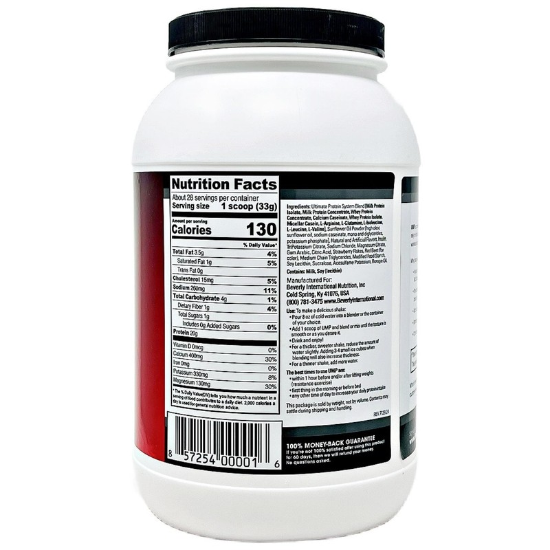 Beverly International UMP Protein Powder, Strawberry. Unique Whey-Casein Ratio Builds Lean Muscle. Easy to Digest. No Bloat. (32.8 oz) 2lb .8 oz