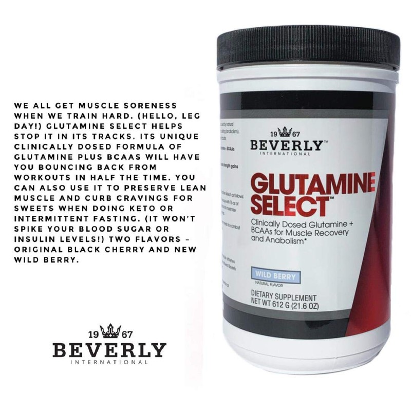 - Glutamine Select from Beverly International makes it easier to build lean muscle and bounce back from tough workouts with a clinically dosed formula of glutamine and BCAAs.*