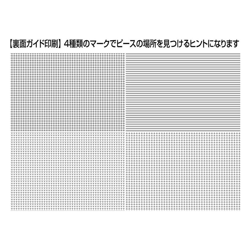 - The back is printed with 4 different markings to help you separate the pieces and find the pieces in place