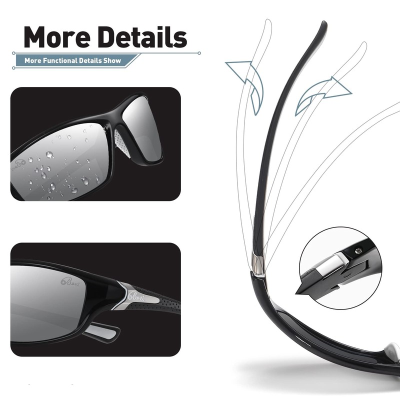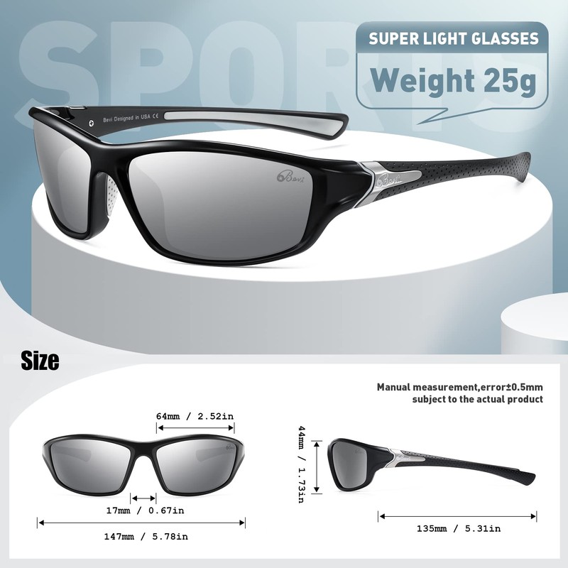 - ⭐OUTSTANDING LENSES – Bevi polarized lenses are comparable to the thickness you would find on much higher priced sports eyewear. TAC (Triacetate) lenses pass a double decentering test to ensure there is no optical distortion which can cause eye strain and headaches. Bevi Polarized sunglasses help reduce glare caused by reflected light to improve vision and comfort.