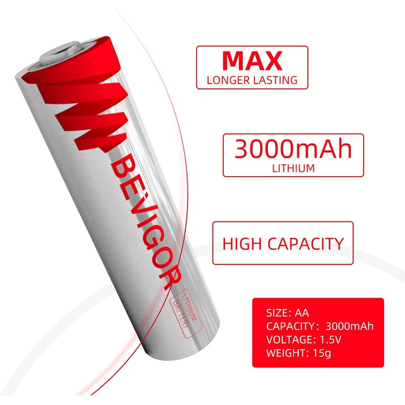 Bevigor Lithium Batteries AA Size, AA Battery 12Pack, 3000mAh Double A Battery, 1.5V Lithium AA Battery, Longer Lasting Lithium Iron AA Batteries for Flashlight, Toys, Remote Control【Non-Rechargeable】